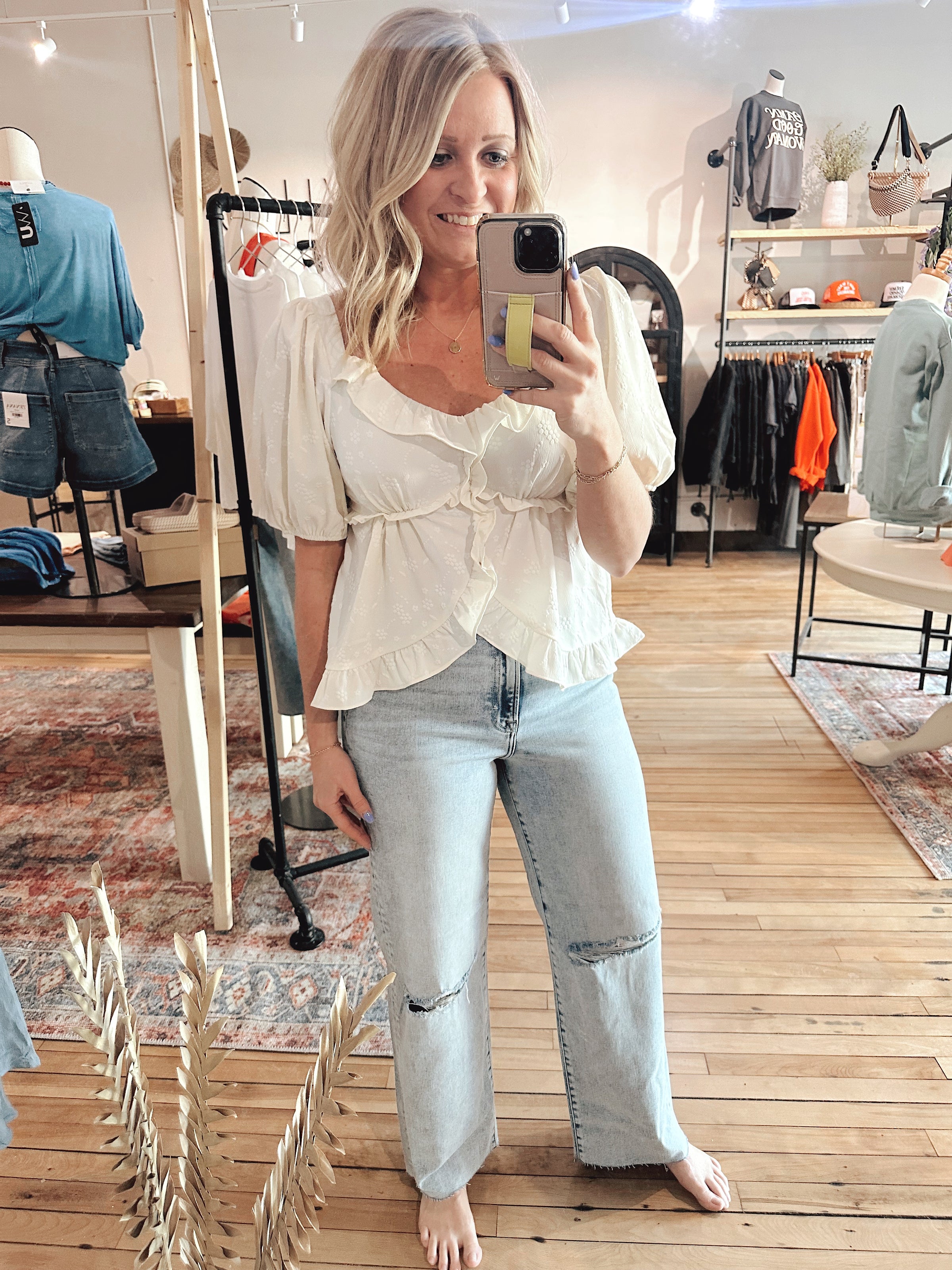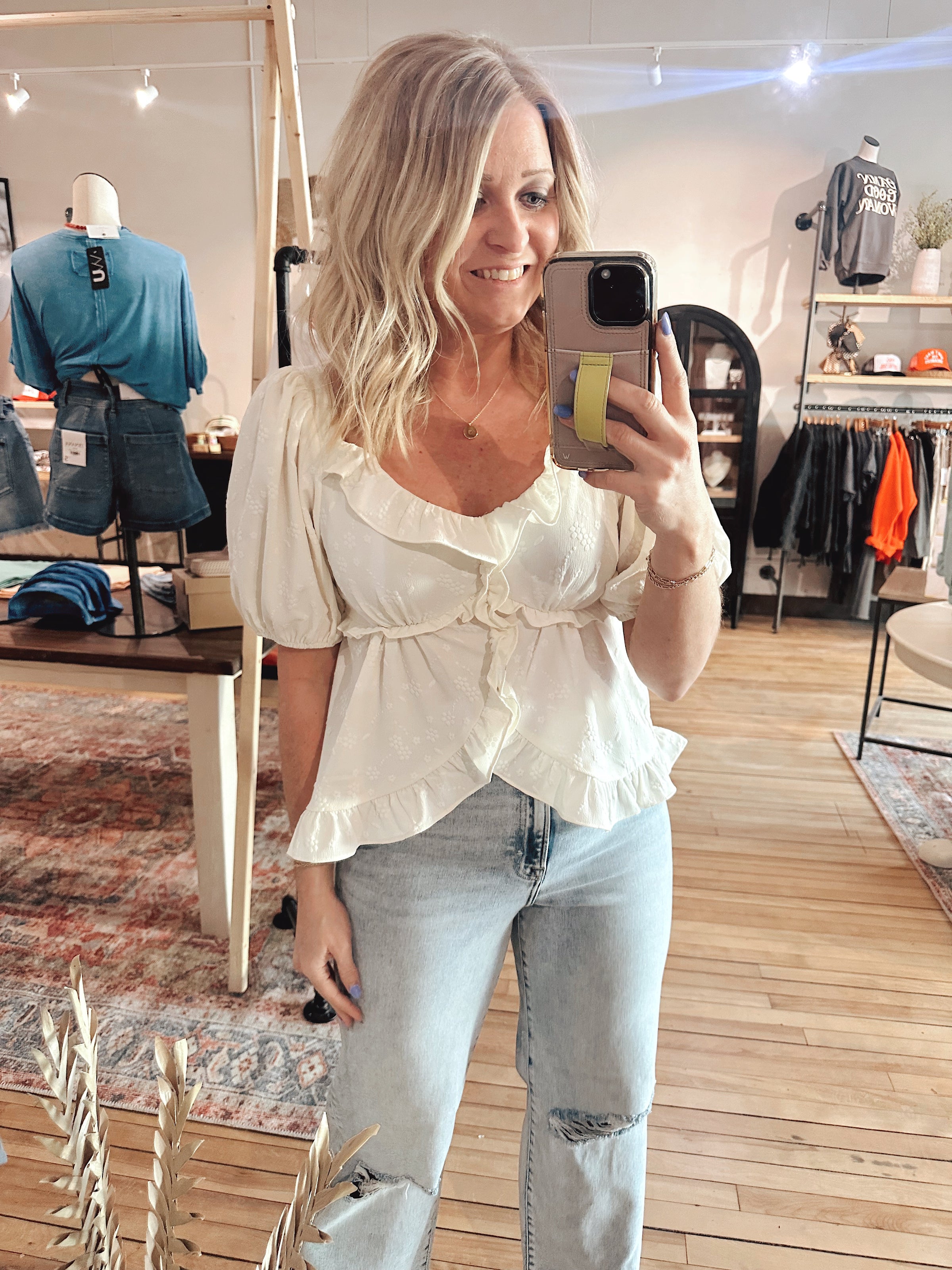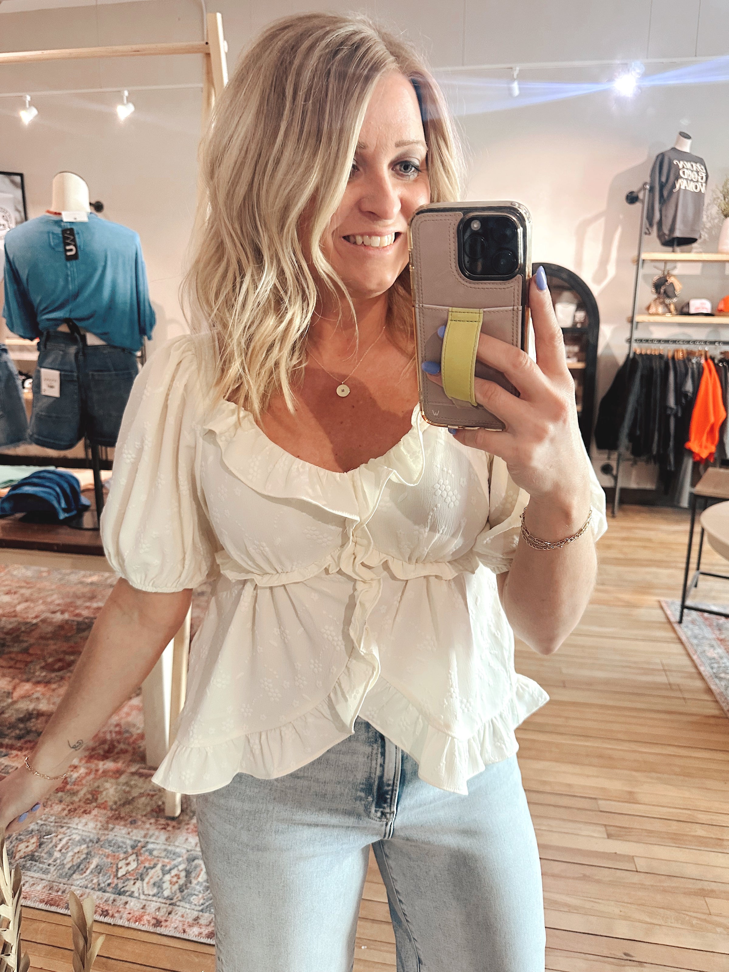 A feminine statement blouse featuring soft ruffle detailing and a romantic bloom-inspired design. Lightweight and flowy, this top brings effortless elegance to both everyday styling and dressier occasions.