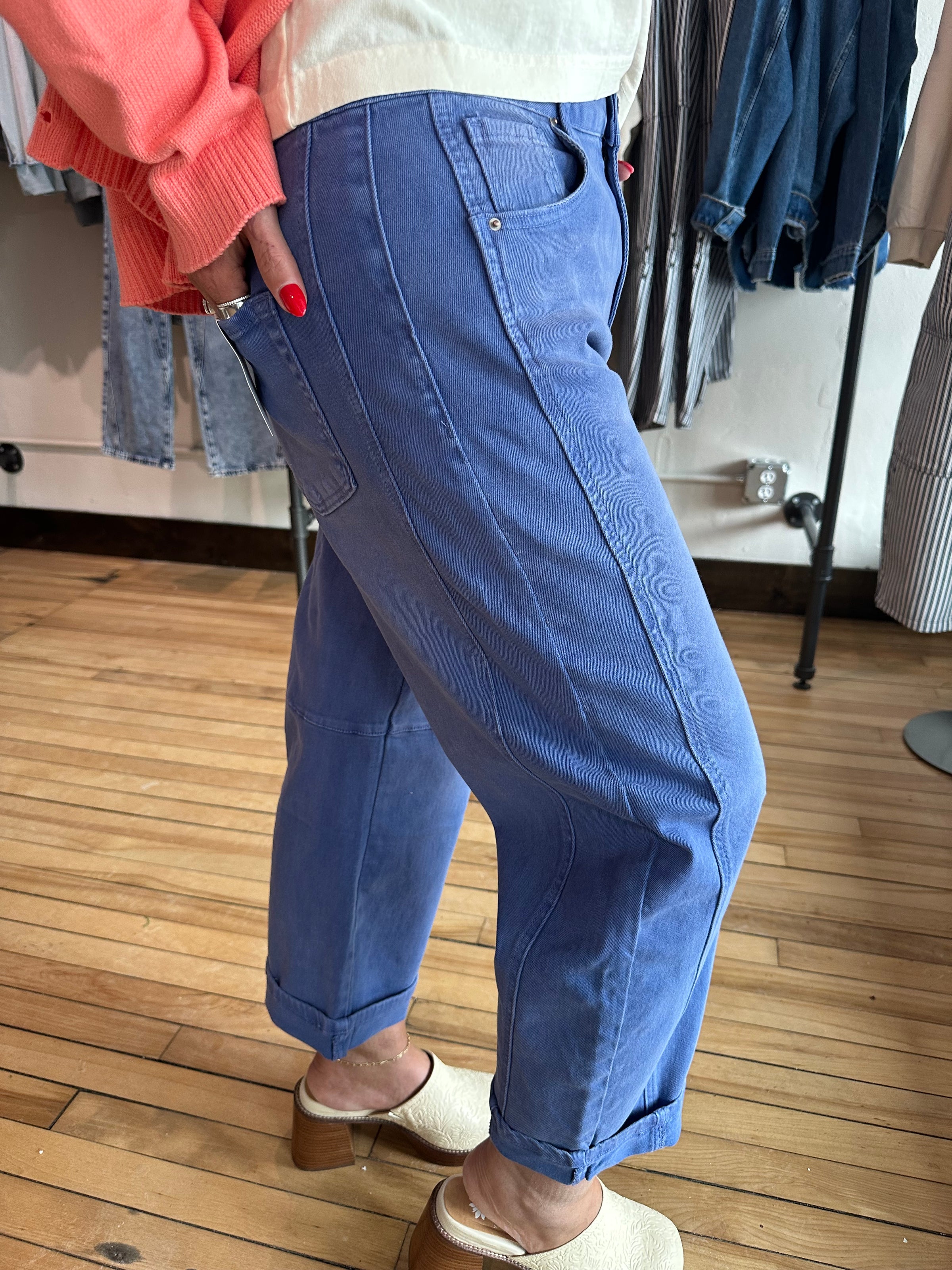A modern barrel-leg silhouette with a cropped length for an effortless, contemporary feel. Designed to add subtle structure while keeping everyday comfort in mind.