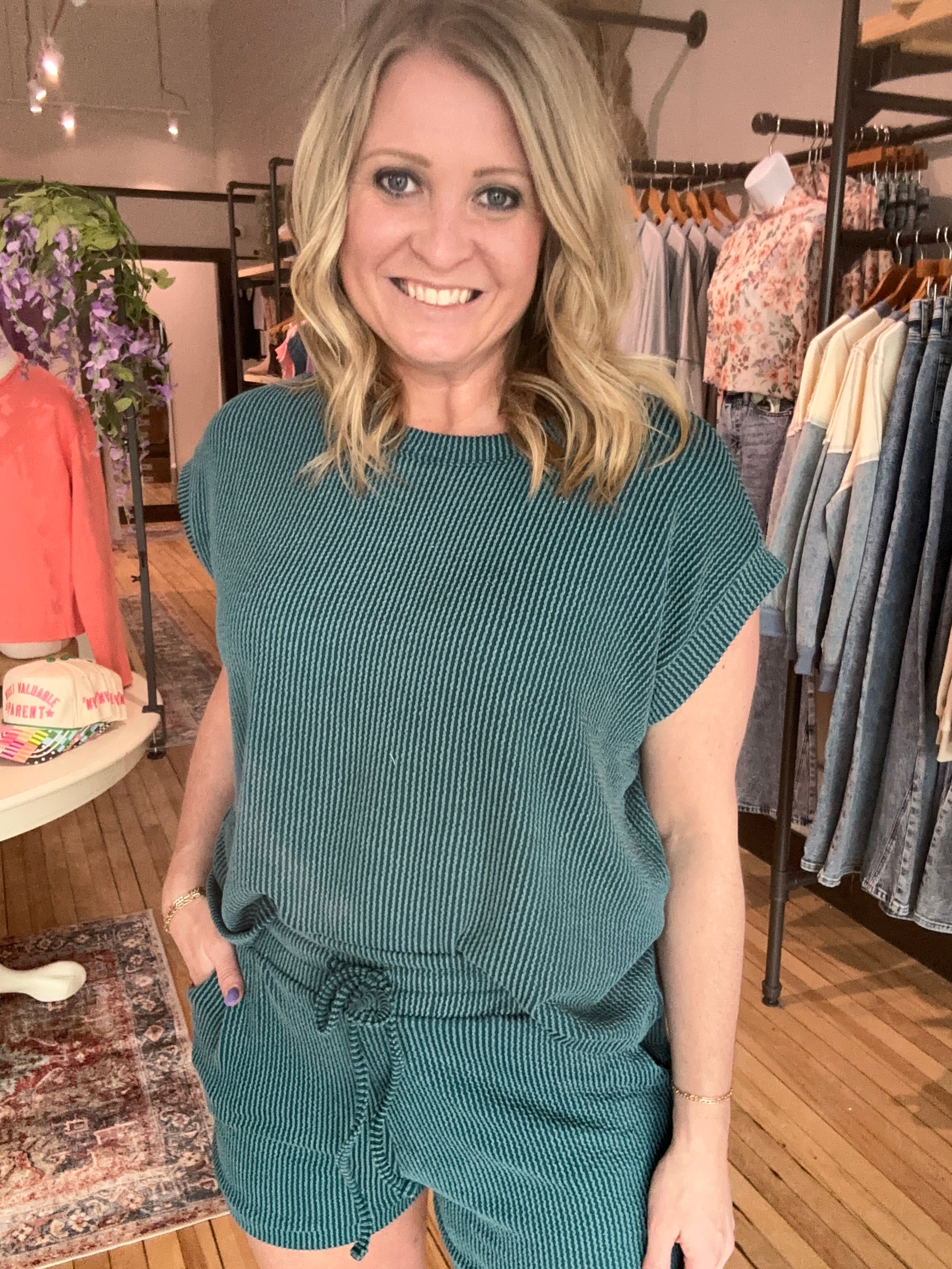 Raised Rib Cap Sleeve Top & Shorts Set — Teal
