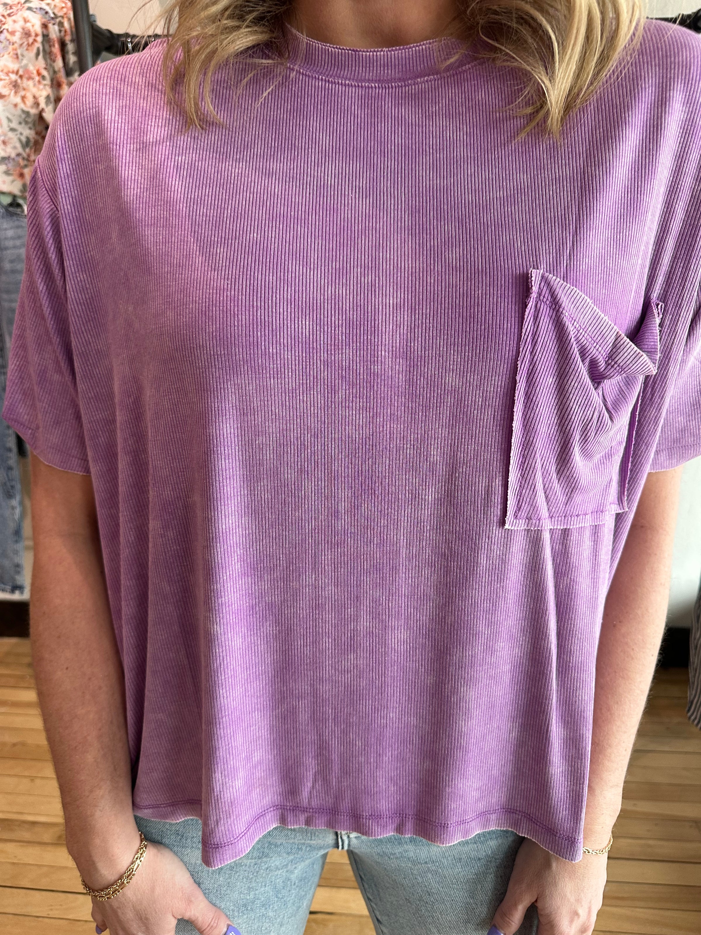 A relaxed round-neck silhouette crafted from soft stretch ribbed fabric. Finished with cuffed sleeves and a subtle back patch for an effortlessly lived-in look.